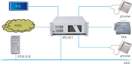 一家專業(yè)的 CTI 公司采用 "EVOC"IPC-811,一款具有 14 個(gè)擴(kuò)展槽架裝的工業(yè)電腦,而不是 傳統(tǒng)的 PBX 作為其 UNPBX 解決方案的平臺來建立自己的系統(tǒng)。這種 PC-based 的 PBX 由 "EVOC"IPC-811、聲卡和 PBX 軟件組成。一個(gè) IPC-811有 48 個(gè)端口供插入語音卡。系統(tǒng)執(zhí)行信 息交換和語音處理功能,還提供電話接口。 系統(tǒng)把來自 PSTN (公共交換電話網(wǎng))的電話線與辦公 室的普通電話連接在一起。由于其開放性、標(biāo)準(zhǔn)性和可編程性,它可以完成無人值守、語音郵件、 呼叫控制、呼叫追蹤及呼叫中心這些功能。