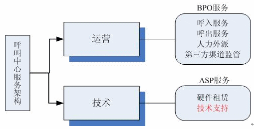 Call Center)之后出現(xiàn)的新型模式,它的投資和操作模式介于自己建設和外包兩種模式之間,租用設備和技術,而座席代表是公司自己的,是呼叫中心平臺資源的出租。對于呼叫中心而言,呼叫平臺資源不僅僅指硬件平臺,同時包括軟件技術支持。很多ASP提供商和ASP委托方狹隘的理解把ASP服務定位于租賃、物理資源的外包,顯然局限了ASP的發(fā)展。