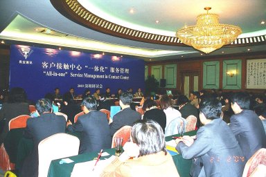 2003年2月21日,五洲賓館長江廳高朋滿座,由香港資深Call Center服務(wù)商易寶通訊服務(wù)有限公司主辦的電信行業(yè)客戶接觸中心"一體化"服務(wù)管理研討會在這里隆重舉行。全國各地的電信、移動、聯(lián)通、網(wǎng)通等運營商及易寶的合作伙伴共四十多家單位的Call