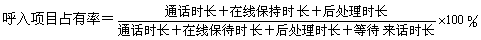- 定義:占有率是一個衡量呼入式業(yè)務座席工作負荷的指標,一般是指某段統(tǒng)計時間內(nèi),座席員處理多通電話的總時長與實際登錄系統(tǒng)時長的比率。對于沒有座席操作系統(tǒng)的來說,占有率統(tǒng)計就比較困難,但是也可以通過對通話時長、在線等待時長、后處理時長、等待來話時長來進行粗略統(tǒng)計。