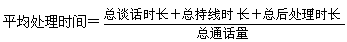 - 定義:是指某一統(tǒng)計時段內(nèi),座席與顧客談話時間、持線時間及事后處理與電話相關工作內(nèi)容的時間的總和除以總的通話量。