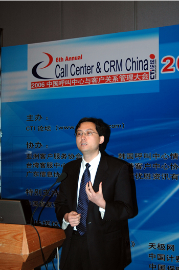 2006年4月3日至5日,2006中國(guó)呼叫中心與客戶關(guān)系管理大會(huì)在北京國(guó)際會(huì)議中心隆重召開(kāi),以下是電訊盈科、客戶聯(lián)絡(luò)中心業(yè)務(wù)高級(jí)產(chǎn)品經(jīng)理王實(shí)博士專題演講實(shí)錄:
