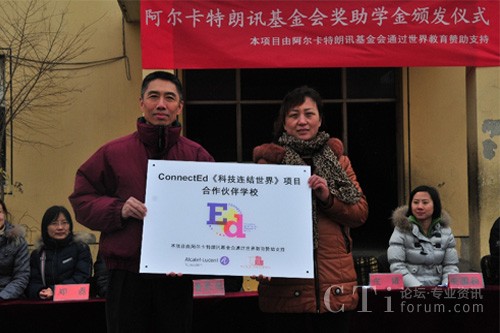 CTI論壇(ctiforum)3月6日消息(記者 浩宇):近日,法國阿爾卡特朗訊基金會(Alcatel-Lucent Foundation)與美國非營利組織世界教育(World Education)在北京市大興區(qū)農民工子弟學!埡W校聯合舉辦公益助學活動,來自阿爾卡特朗訊中國旗艦企業(yè)——上海貝爾及世界教育的志愿者為45名貧困生、72名成績優(yōu)秀學生、244名成績進步獎獲得者共計361人發(fā)放獎助學金和獎狀。此次活動是ConnectEd“科技連結世界”項目協助流動青少年“透過科技擁抱世界”系列公益活動的重要一站,ConnectEd “科技連結世界”項目由阿爾卡特朗訊基金會(Alcatel-Lucent Foundation)與世界教育(World Education)共同在全球推動。作為志愿者之一,上海貝爾執(zhí)行副總裁、阿爾卡特朗訊中國區(qū)產品與研發(fā)負責人莊靖博士參與了此次活動,并為阿爾卡特朗訊ConnectEd項目合作校揭牌。雙方還在北京市昌平區(qū)新源學校舉行了公益助學活動,為45名貧困生、39名成績優(yōu)秀學生、52名成績進步獎獲得者共計136人發(fā)放獎助學金。