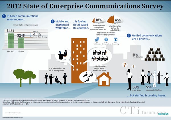 “此項研究的發(fā)現(xiàn)證實(shí)了我們從客戶那里得來的反饋:基于IP的統(tǒng)一通信不僅提高了終端用戶的生產(chǎn)效率,還節(jié)約了公司成本,”西門子企業(yè)通信北美區(qū)總裁兼全球市場總監(jiān)Chris Hummel說,“企業(yè)通信正處于從PBX到IP以及從客戶機(jī)房到云部署的過渡時期。西門子企業(yè)通信致力于為我們的客戶提供靈活開放的企業(yè)通信解決方案,以適應(yīng)其業(yè)務(wù)需要。這有助于降低IT技術(shù)的復(fù)雜性,更好地支持企業(yè)員工的移動性需求,并幫助企業(yè)完成這種轉(zhuǎn)變!