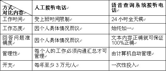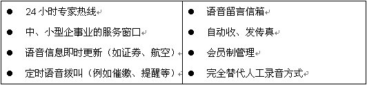 將以往的單位的人工熱線電話轉(zhuǎn)換為計(jì)算機(jī)24小時(shí)自動(dòng)熱線。有效解決服務(wù)態(tài)度、服務(wù)質(zhì)量等敏感問(wèn)題。咨詢來(lái)電只須象以往撥打熱線電話,計(jì)算機(jī)中的語(yǔ)音卡就會(huì)自動(dòng)接通,完成95%以上的人工服務(wù)任務(wù),用戶就可以通過(guò)電話這種最簡(jiǎn)單、最易用的方式快速獲取信息。