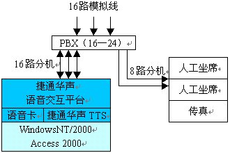 適用于中小型企事業(yè)單位的客戶服務(wù)系統(tǒng),或信息查詢系統(tǒng)。特點(diǎn)是線路資源主要用于交互系統(tǒng),可以最大限度的利用線路資源進(jìn)行服務(wù)或查詢工作。同時(shí)充分利用交換機(jī)進(jìn)行內(nèi)部線路交換,提高服務(wù)效率。