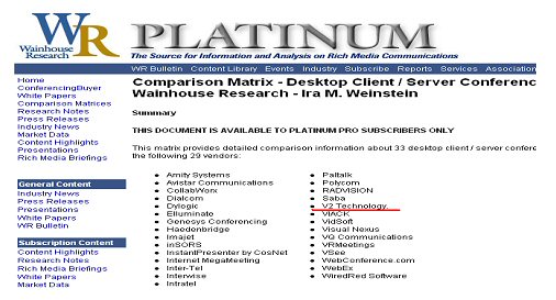 日前,在美國(guó)多媒體視頻和通訊領(lǐng)域權(quán)威市場(chǎng)調(diào)研機(jī)構(gòu)的 Wainhouse Research 最新發(fā)布了的全球軟件視頻會(huì)議廠商的研究報(bào)告,北京威速(V2)科技有限公司作為中國(guó)領(lǐng)先的軟件視頻會(huì)議與解決方案提供商,憑借在軟件視頻會(huì)議領(lǐng)域里始終如一的卓越表現(xiàn),以中國(guó)唯一廠商的身份入主“全球軟件視頻會(huì)議TOP30”榜單。