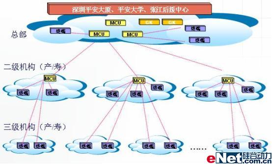 平安保險公司的視頻會議系統(tǒng)覆蓋公司產(chǎn)險、壽險、信托、銀行等各分支公司。從99年起,平安保險的視頻會議系統(tǒng)建設就未曾停滯過,至今年7月,已經(jīng)在產(chǎn)險和壽險兩大公司內覆蓋至全國各地的三級機構,其他分公司也已經(jīng)覆蓋至全過二級機構。公司全部使用POLYCOM視頻會議系統(tǒng)構架其主要會議室,終端總數(shù)已超過四百臺,多點會議服務器(MCU)四十余臺,分布全國各地以及平安保險公司全球的各樞紐公司。預計至今年年底,平安保險的POLYCOM視頻會議系統(tǒng)將成為國內最大的企業(yè)級視頻會議應用系統(tǒng)。