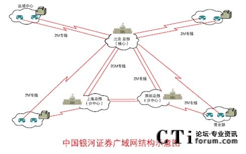 銀河證券采用二級網絡結構,其中一級采用三中心的冗余結構;二級為各營業(yè)部。營業(yè)部線路上采用雙專線的冗余線路方式,其中兩條線路分別屬于兩家不同的電信運營商。營業(yè)設備上采用雙設備,保證了營業(yè)部在設備上的冗余,避免硬件設備單點故障,同時實現了業(yè)務網與辦公網的物理分離。
