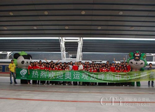 經(jīng)過23 個(gè)小時(shí)的車旅生活,我們來(lái)到了我們偉大的首都--北京.激動(dòng),意外,驚喜.我從來(lái)沒有想過會(huì)有福娃來(lái)接我們.當(dāng)我們所有人看到晶晶和貝貝時(shí)候.23 個(gè)小時(shí)的勞累一掃而空.在奧組委的工作人員的帶領(lǐng)下.我們?cè)谝惶?hào)站臺(tái)集合.終于可以滿足大家的心愿拉!!-和福娃合影咯!看看大家多有激情!那2個(gè)福娃是大家精神的強(qiáng)大的動(dòng)力.哈哈.和我們親愛的奧運(yùn)吉祥物合影留念后.大家坐上涼爽的冷巴.向我們的駐地開進(jìn)!