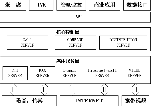 億陽信通ICSYS智能呼叫中心系統(tǒng)采用媒體抽象的設(shè)計(jì)思想,通過媒體服務(wù)層屏蔽不同媒體的差異,允許以一種統(tǒng)一的消息處理機(jī)制來定義呼叫,把復(fù)雜的通道處理過程對(duì)客戶及服務(wù)代表完全屏蔽,實(shí)現(xiàn)媒體無關(guān)性。這種結(jié)構(gòu)使系統(tǒng)具有良好的擴(kuò)展能力,可根據(jù)具體的應(yīng)用場景增加或減少媒體;當(dāng)新的媒體出現(xiàn)時(shí),只需開發(fā)對(duì)應(yīng)的媒體服務(wù)器,系統(tǒng)核心層不需作任何修改即可支持新的媒體。