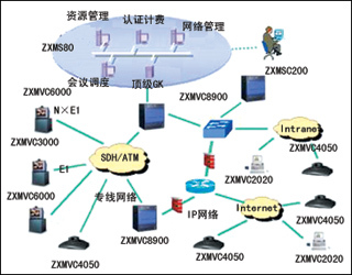 大型行政視訊系統(tǒng):以它為核心骨干,以320系統(tǒng)為延伸,以IP為補充,組建以專線方式為主的寬帶高清視訊系統(tǒng)。采用ZXMVC8900+ZXMVC6000組建網(wǎng)絡(luò)主體,在信道有限的地區(qū)采用ZXMVC3000終端,在信道有條件后可平滑升級到ZXMVC