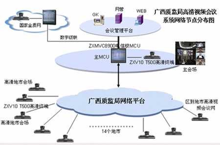 憑借全面的融合通信產(chǎn)品和解決方案、豐富的電子政務(wù)工程建設(shè)和實(shí)施經(jīng)驗(yàn),中興通訊為廣西“金質(zhì)工程”(一期)系統(tǒng)“量身定做”出一整套基于IP融合、使用方便靈活的解決方案:將整個(gè)系統(tǒng)分為兩個(gè)部分,即區(qū)質(zhì)監(jiān)局一級(jí)節(jié)點(diǎn)信息中心、各地市質(zhì)監(jiān)局及相關(guān)研究機(jī)構(gòu)共計(jì)15個(gè)二級(jí)節(jié)點(diǎn)信息中心,在管理上體現(xiàn)垂直的系統(tǒng)架構(gòu)。整個(gè)網(wǎng)絡(luò)可以看作一個(gè)分級(jí)的星形網(wǎng)絡(luò),結(jié)構(gòu)簡單、易于擴(kuò)展。