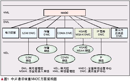 中興通訊提出的NNOC主要由綜合網(wǎng)管系統(tǒng)(UNMS)、資源管理系統(tǒng)(RMS)和業(yè)務(wù)管理系統(tǒng)(SMS)組成,用于為埃塞電信提供統(tǒng)一網(wǎng)管、快速和直觀的故障檢測和定位、實時性能監(jiān)控和方便的業(yè)務(wù)部署和監(jiān)控等諸多功能。