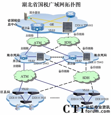湖北省國稅三級專網(wǎng)已經(jīng)建成,但是存在單點單鏈路隱患,為了保證網(wǎng)絡(luò)可靠運行,2006年湖北國稅攜手中興通訊對省國稅系統(tǒng)的網(wǎng)絡(luò)進行備份網(wǎng)絡(luò)改造,結(jié)合稅務(wù)系統(tǒng)金稅三期網(wǎng)絡(luò)需求,網(wǎng)絡(luò)改造采用SDH線路來組建高帶寬的廣域網(wǎng)絡(luò),同時與原有的網(wǎng)絡(luò)設(shè)備(包括路由器、交換機)及網(wǎng)絡(luò)接入設(shè)備實現(xiàn)互連互通,互為備份。