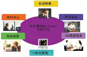 在這類平臺中,呼叫中心系統(tǒng)也是構建在北電可靠的Meridian 1交換機平臺及先進的呼叫中心組件之上,完全可以根據技術的發(fā)展及業(yè)務的需要進行提升。由于引進了配套軟件,目前的呼叫中心實現(xiàn)了CRM的管理及技術,使運營商在虛擬運營業(yè)務中為用戶提供了個性化服務。