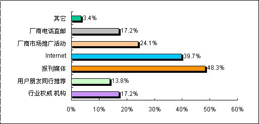此次調(diào)查顯示,由于視頻會議系統(tǒng)的行業(yè)性相對較強,目前用戶在了解視頻終端會議系統(tǒng)產(chǎn)品時,報刊媒體、Internet、廠商推廣活動、廠商電話直郵和行業(yè)權(quán)威機構(gòu)成為主要的信息來源渠道。值得注意的是網(wǎng)絡的普及使得更多的用戶也選擇Internet作為了解信息的重要途徑。但對各視頻會議系統(tǒng)的廠商而言,由于客戶群體相對龐大,分散區(qū)域較為廣泛,在作好直銷的同時,也應該加強渠道的建設,以更及時和準確地了解到用戶采購和招標的信息,同時也能夠降低銷售成本。