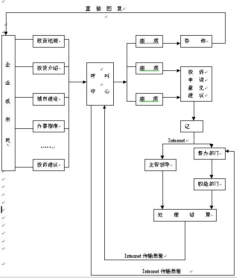 4、投訴、建議的處理信息,通過(guò)呼叫中心反饋給領(lǐng)導(dǎo)部門和投訴者。