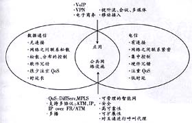NGN是融合網(wǎng)絡(luò)。數(shù)據(jù)網(wǎng)與電信網(wǎng)曾是兩個(gè)有著不同特性的網(wǎng)絡(luò),它們的融合將帶來一系列新的業(yè)務(wù),并對網(wǎng)絡(luò)平臺提出新的要求(見圖1)。因此,NGN的網(wǎng)絡(luò)功能結(jié)構(gòu)如何設(shè)定是我們要關(guān)注的重點(diǎn)。