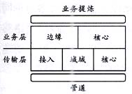 NGN是由今天的網(wǎng)絡(luò)演進(jìn)而成的,基本上可以分為傳送層和業(yè)務(wù)層(見圖2)。傳送層又被豎切為接入網(wǎng)、城域網(wǎng)和核心網(wǎng)。業(yè)務(wù)層被橫切為邊緣和核心兩大部分。
