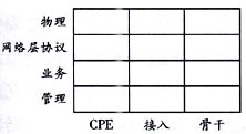 歐盟在NGN的劃分上,采取了比圖2更細(xì)化的方法,把網(wǎng)絡(luò)分為3個(gè)區(qū)域(用戶駐地設(shè)備(CPE)、接入、核心)和4個(gè)層面(物理、網(wǎng)絡(luò)層協(xié)議、服務(wù)、管理),見圖3。