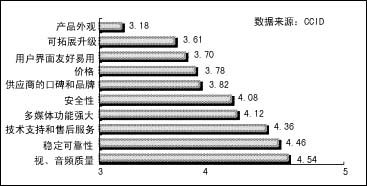 CCID對視頻會議現(xiàn)狀調查結果顯示,與以往相比,用戶對視頻會議終端系統(tǒng)的選擇標準已經發(fā)生了變化。用戶除了一如既往地要求很好的音視頻質量外,對產品的穩(wěn)定可靠性、技術支持和售后服務、多媒體功能、安全性四項也有要求。其中,用戶對視頻會議終端系統(tǒng)的多媒體功能和設備的可拓展升級提出了更高的要求,而不再局限于視音頻質量和穩(wěn)定、可靠性上,對多媒體功能的需求在不斷地增長。更多的用戶不僅把會議系統(tǒng)用于視音頻開會,更將視頻會議的多媒體功能作為采購的重要指標之一。