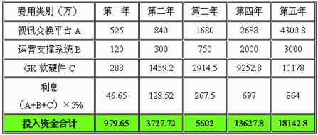 根據(jù)上表,相應(yīng)的GK建設(shè)投入費用估算如下:
