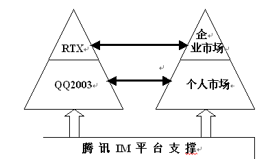 3、超越競爭的市場策略。從QQ2003到RTX,標志著騰訊對IM市場的獨特認識和IM平臺與服務提供商的獨特定位,這是一種縱向一體化的發(fā)展戰(zhàn)略,是建立在對IM市場需求和發(fā)展基礎上戰(zhàn)略選擇,是一種超越競爭的市場策略。