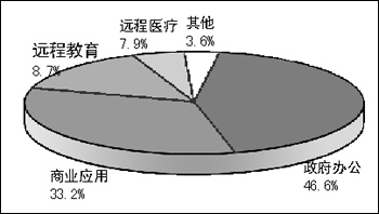 我國的遠程教育和遠程醫(yī)療尚處于發(fā)展初期,所占份額分別是8.7%和7.9%。這反映視頻會議系統(tǒng)在遠程教育、遠程醫(yī)療等方面建設力度還不夠大。不過,據研究表明,這兩個領域的應用近年來呈現出蓬勃發(fā)展的勢頭。