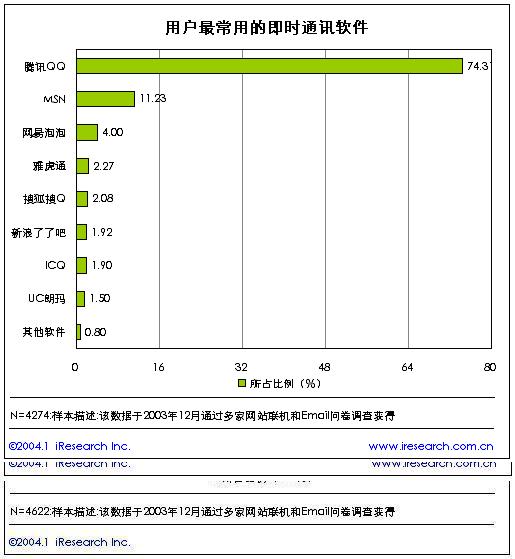 新迎來的2004年對于中國的互聯(lián)網(wǎng)是充滿無限憧憬的一年,互聯(lián)網(wǎng)用戶打到了近8000萬,在繼短信、網(wǎng)絡(luò)廣告、網(wǎng)絡(luò)游戲成為中國網(wǎng)絡(luò)企業(yè)發(fā)家致富的法寶之后,即時(shí)通訊又將是一塊無限誘惑的領(lǐng)地,成為門戶網(wǎng)站、電信運(yùn)營商展開廝殺的新大陸。