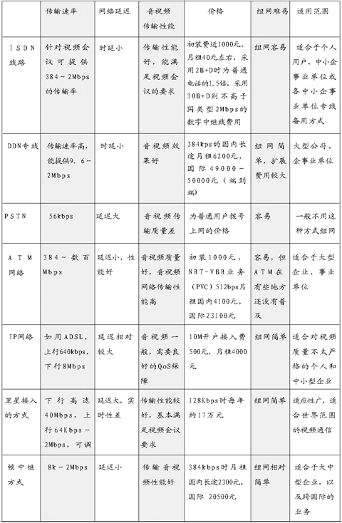 對于通信量較少、通信時間較短的用戶,選用ISDN的費用遠低于租用DDN專線或幀中繼電路的費用,而且具有速率高、投資少、聯(lián)網方便等特點,能滿足基本會議電視系統(tǒng)的應用要求。但全國ISDN網絡還處在不斷升級階段,可靠性和穩(wěn)定性相對于專線方式還有不足。