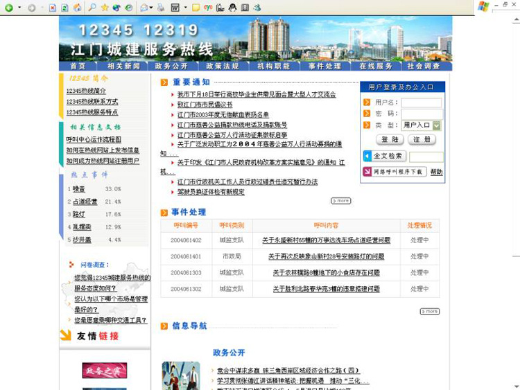 附圖二 江門“12345”城建服務熱線系統(tǒng)首頁圖