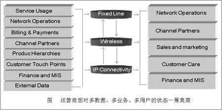 “很淺顯地說,就目前國內(nèi)運營商的分析水平而言,問題并不是出在工具上,對于一些省級運營商而言,無論是集成商、還是系統(tǒng),都可以說已經(jīng)采用了全球領(lǐng)先供應(yīng)商的產(chǎn)品,但具體到業(yè)務(wù)上,由于長期以來的模式尚未改變,有可能到客戶調(diào)查時才發(fā)現(xiàn),電話占用號碼的客戶已經(jīng)停機了,而調(diào)查人員卻不能實時看到業(yè)務(wù)收入表,更準(zhǔn)確地說,針對同一客戶,他用了哪些業(yè)務(wù)?是單一業(yè)務(wù)還是多種業(yè)務(wù)?是優(yōu)惠業(yè)務(wù)還是正常業(yè)務(wù)?服務(wù)坐席都有可能無法立即獲得實時數(shù)據(jù),這樣的前提下,再怎么說計費系統(tǒng)、融合業(yè)務(wù)、服務(wù)質(zhì)量,都不具現(xiàn)實意義。”山東網(wǎng)通計費部門一位不愿意透露姓名的副主任級主管告訴記者。