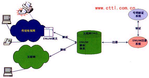 圖1 引入ENUM機(jī)制的網(wǎng)絡(luò)體系架構(gòu)