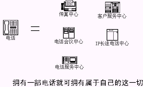 該方法的實(shí)施,可以讓每一個(gè)電話和強(qiáng)大的CTI系統(tǒng)聯(lián)系,一部電話將變成語音系統(tǒng)、傳真系統(tǒng)、電話會(huì)議系統(tǒng)、……。擁有這一切用戶只需要支付呼叫轉(zhuǎn)移的費(fèi)用?梢栽O(shè)想,以后開辦公司,只要申請(qǐng)電話,擁有ADSL上網(wǎng)的電腦,用戶在辦公室、在家,打開電腦,單擊進(jìn)入自己的語音系統(tǒng)、會(huì)議系統(tǒng),宣傳公司,召開會(huì)議,發(fā)送傳真。公司擁有、使用自己的、電信級(jí)的CTI系統(tǒng);所有CTI應(yīng)用系統(tǒng)的開發(fā),語音部分完全由電話接入服務(wù)商提供,……。