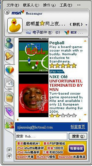 3) 拼接代替加強,F(xiàn)有應(yīng)用的簡單決定了IM軟件本身的簡單,因此IM本身變得不受關(guān)注,廠商所作的大多是功能拼接,例如MSN加強聯(lián)網(wǎng)游戲,QQ傍上移動。甚至可以認為,IM本身已經(jīng)被置于次要位置。