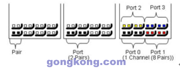 Fabric 接口的最小連接單元。端口的兩對差分信號(hào)被映像成一收一發(fā)的傳輸模式。下圖描繪了一個(gè)差分對、一個(gè)端口、以及一個(gè)通路的針腳分布。