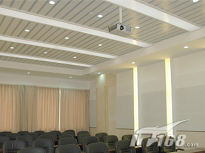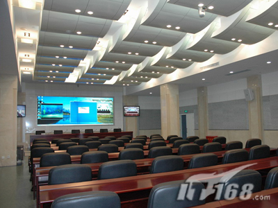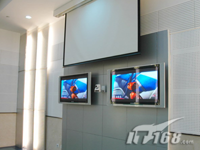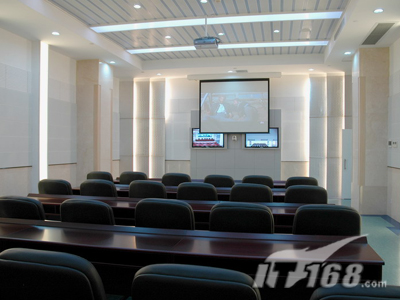 在副會場方面,和主會場區(qū)別不大,不過比主會場要光亮一點,面積也小了很多,所以主顯示系統(tǒng)只需要SONY PX40正面投影(120寸)就可以搞定。VPL-PX40可以多種方式安裝,包括桌面正投,吊頂及背投。供選購的兩款鏡頭擴展了安裝的靈活性。中央控制開關功能讓用戶能通過中央電源開關直接開關投影機。VPL-PX40還配備了獨特的密碼認證系統(tǒng),采用SONY液晶板的新型光學系統(tǒng),結合265W