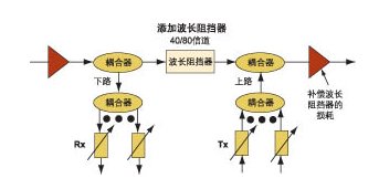 一些基于廣播和選擇結(jié)構(gòu)的ROADM提供了很多波長,可以克服這種結(jié)構(gòu)固有的缺乏波長重用的缺點。流量異常增加需要在某些點重用波長時,可以增加波長阻擋器(見圖2)。