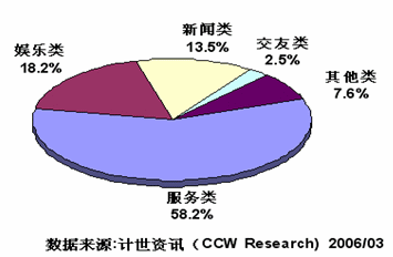 2006年,IVR業(yè)務(wù)的發(fā)展已經(jīng)具備了良好的外部條件。首先,具有龐大的潛在用戶(hù)群。有關(guān)統(tǒng)計(jì)顯示,截至2005年11月,中國(guó)移動(dòng)用戶(hù)數(shù)量達(dá)到3.88億,固定電話用戶(hù)數(shù)量達(dá)到3.51億,其中無(wú)線市話用戶(hù)數(shù)量達(dá)到8622萬(wàn)。其次,市場(chǎng)容量急劇膨脹;再次,業(yè)務(wù)收入快速增長(zhǎng);最后,IVR不受手機(jī)型號(hào)的限制,潛在用戶(hù)的普及率極高。這些使得IVR具有良好的發(fā)展?jié)摿Γ?jì)世資訊(CCW Research)認(rèn)為,IVR是繼短信(SMS)之后的又一座大型金礦。