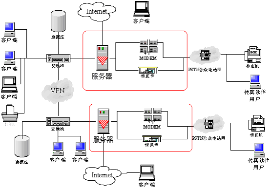 上圖中紅色框架為gotoneFax系統(tǒng)。它可以很方便的融入目前企業(yè)的網(wǎng)絡(luò)中,擴(kuò)張您目前網(wǎng)絡(luò)的功能,為您提供及時的服務(wù)。當(dāng)然這也是我們的愿望。