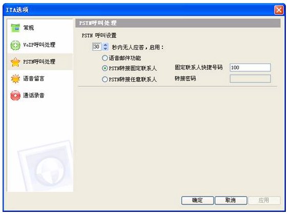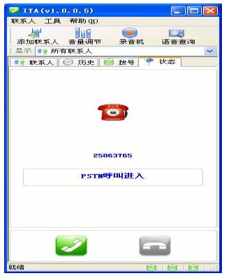 現(xiàn)在你的安裝工作已經(jīng)完成了,如果有 Skype客戶撥打cn13020063118就會(huì)聽到“歡迎致電某某公司,產(chǎn)品咨詢請(qǐng)撥15,產(chǎn)品訂購(gòu)請(qǐng)撥16,人工服務(wù)請(qǐng)撥0”的語音提示(在ITA軟件設(shè)定的語音)。