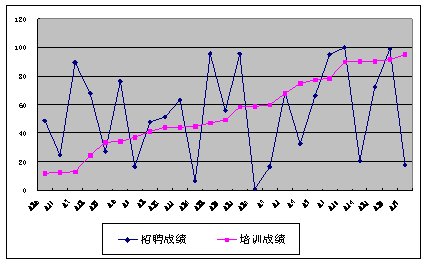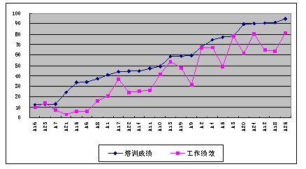 我們通過分析,圖3顯示,員工的培訓(xùn)成績和其工作績效是無關(guān)的,這說明培訓(xùn)是無效的。無效的原因也許是由于培訓(xùn)內(nèi)容不合理或培訓(xùn)組織實施不善等原因,總之培訓(xùn)是無效的,需要改進。