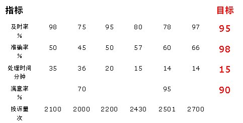 在日常工作中,業(yè)績評估在運營商客戶服務(wù)部門的工作中地位非常重要。在績效考核的過程中,經(jīng)?赡墚a(chǎn)生多方對同一個結(jié)果有不同評價的現(xiàn)象,這大多是由于各方的評價標準和評價方式不同產(chǎn)生的。如:當我們問一位投訴管理員“投訴管理管得怎么樣?”的時候,如果他的回答是“還可以”,則會產(chǎn)生很大的歧義。表1是1-6月份投訴處理流程的主要相關(guān)指標情況。