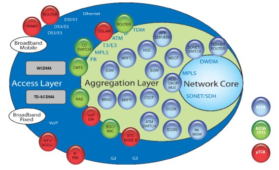 在匯聚層與核心網(wǎng),對高可用性、傳輸容量與事務(wù)處理能力要求很高。ATCA通常是高性能的最佳選擇。mTCA與ATCA可對電信網(wǎng)中要求的操作性與高可用性提供與生俱來的支撐,而其它IT技術(shù)卻做不到。ATCA與mTCA作為一種系統(tǒng)技術(shù),是電信級(jí)業(yè)務(wù)與商用組件之間自然而然的選擇。