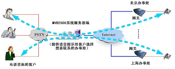 MVB2000最大特點(diǎn)之一:特別適合組建基于IP的分布式呼叫中心,遠(yuǎn)端可以用標(biāo)準(zhǔn)的IAX2/H.323/SIP協(xié)議的IP話機(jī)或者語音網(wǎng)關(guān)。本地分機(jī)無法應(yīng)答的咨詢問題,可以直接轉(zhuǎn)接到遠(yuǎn)端的分機(jī)來回答,提供遠(yuǎn)程服務(wù)。