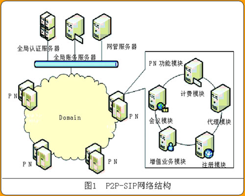 PN在地理上散布各處,邏輯上根據選用的P2P機制的不同可以是環(huán)形的(Chord協(xié)議)、矩陣的(CAN協(xié)議)、網狀的(Pastry協(xié)議和Tapestry協(xié)議);镜腜N至少包括注冊和代理兩種功能。為進行商業(yè)運營,可以部署全局認證服務器、全局賬務服務器和網管服務器等等,用于管理全部的用戶和所有的PN。