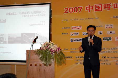 2007年4月18日至20日,2007中國呼叫中心及企業(yè)通信大會在上海光大會展中心國際大酒店隆重召開,以下是專題演講實錄:主持人(李京成):各位早上好,大會的第三天了,時間像飛一樣的快,今天很多朋友都帶著行李來的,結(jié)束就準(zhǔn)備回家了。今天仍然有兩個分論壇在這個分論壇主題是呼叫中心在海外,另外一個分論壇在十號廳,都有非常優(yōu)秀的專家給大家提供精彩的演講。今天我們第一位給大家演講的大家并不陌生,我們的老朋友豐祖軍先生,有請豐祖軍先生。豐祖軍先生是在國內(nèi)是一個非常資深的呼叫中心運(yùn)營管理專家,我們經(jīng)常在一起合作。在此他演講之前,要做好思想準(zhǔn)備跟上他的跳躍思維,不然會落后,他的思維非?欤磉_(dá)也非?,他演講的題目是環(huán)境與人的因素-中國與新加坡呼叫中心的比較,下面把時間交給豐祖軍先生。