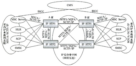 綜上所述,建議IP信令網(wǎng)應(yīng)該采用分層結(jié)構(gòu)。對于省際的MAP、CAP信令采用GT尋址方式,IP STP提供GTT功能;對于省內(nèi)的MAP、CAP信令采用目的地信令點(diǎn)編碼尋址方式,初期可以采用直聯(lián)方式,通過IP STP轉(zhuǎn)接的準(zhǔn)直聯(lián)作為備用路由。省內(nèi)、省際BICC信令通過TMSC Server或CMN轉(zhuǎn)接。