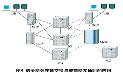 對現(xiàn)有的智能網(wǎng)來說,軟交換以及它所控制的節(jié)點(diǎn)構(gòu)成一個虛擬的SSP,可在INAP/CAP/TCAP/SCCP接口上通過信令網(wǎng)關(guān)與現(xiàn)有智能網(wǎng)中的SCP互通,共同提供智能網(wǎng)業(yè)務(wù),或者直接和IP